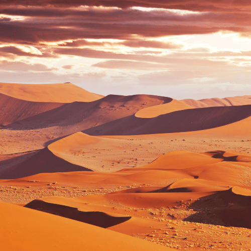 Desayuno. Crucero para contemplar delfines y leones marinos mientras disfrutamos de las ostras locales y vino espumoso. Continuación hacia el Desierto del Namib a través del Paso de Ghaub y de Kuiseb. Opcional con suplemento: para los que no deseen realizar el crucero se puede sustituir el crucero por un paseo en 4×4 en la zona de Sandwhich Harbor, donde las dunas del desierto llegan hasta la costa del Atlántico. Cena y alojamiento.