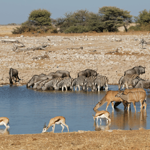 Desayuno. Salida hacia Okahandja, donde si el tiempo lo permite visitamos el mercado de Mbangura. Llegada a Otjiwarongo, que en lenguaje Herero significa “lugar de las vacas gordas” dada la fertilidad de los suelos. Por la tarde, nos trasladamos a un poblado Himba, la mítica tribu que solo habita en Namibia, para obtener mucha información sobre el estilo de vida y cultura de este pueblo que vive como seminómadas. Continuación a las inmediaciones de Etosha, y tiempo libre para descansar. Opcionalmente se puede hacer un primer safari en el P. Nacional de Etosha, en nuestro propio vehículo, pagando el coste de la entrada al Parque. Cena y alojamiento.